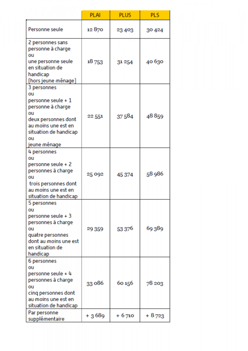 Plafonds de Ressources HLM - hors Paris, et Ile-de-France |